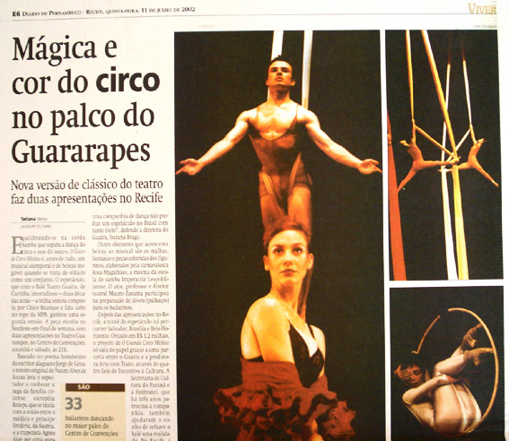 Resumo: “O Grande Circo Místico”, poema de Jorge de Lima, está presente no livro A túnica inconsútil que representa o auge da criação da fase espiritualista do poeta (1938). Esse poema originou duas interpretações que foram adaptadas para a linguagem da dança, mais precisamente, balé, pelo Teatro Guaíra. Partindo desses dados, este estudo pretende verificar como se deram as críticas dos espetáculos – 1983 e 2002. Para tanto, críticas serão pesquisadas e analisadas segundo a estrutura apresentada, o sujeito produtor do texto e os suportes em que foram veiculadas. Com a análise das críticas de “O Grande Circo Místico”, acredita-se ser possível tecer um panorama de como a crítica teatral vem sendo realizada no Brasil do final do século XIX aos dias atuais. Para tanto, ademais do material crítico que será pesquisado, Flora Sussekind (1993) será a base teórica para a escrita do presente artigo."